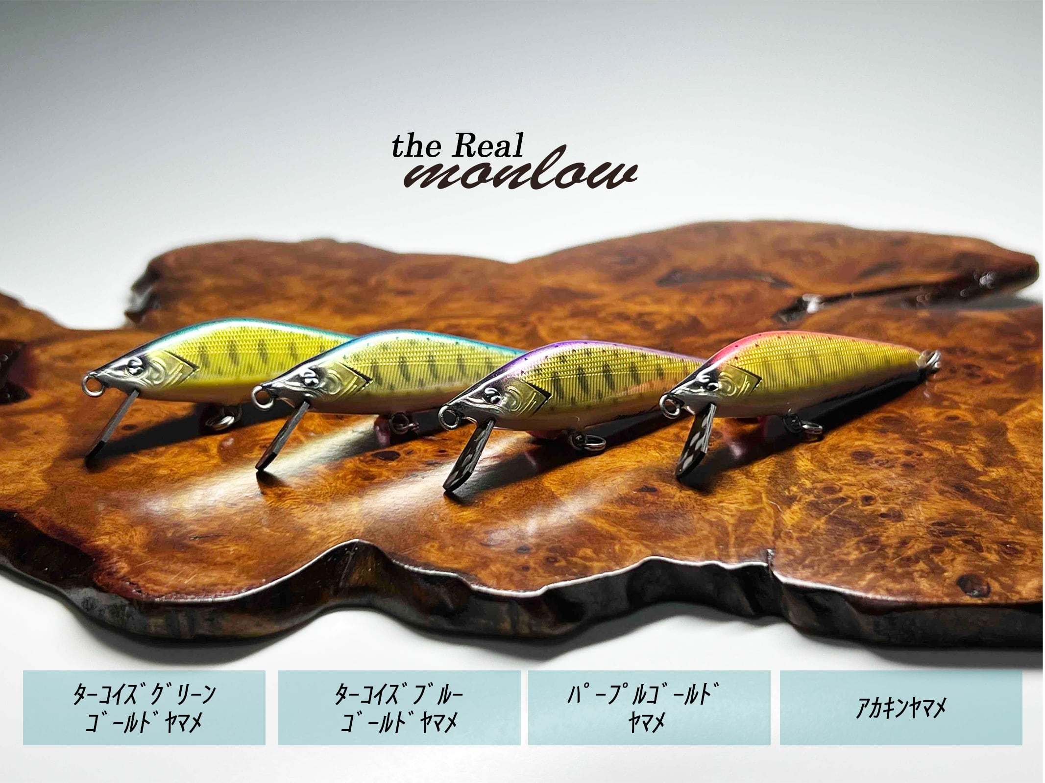 the Real monlow は、ロールウォブアクションを具現化させたハイアピールミノー。the Real の構造を基に、レンジキープや飛距離など総合的に扱い易さを重視し、ワイドリップとやや重めなウエイトを採用。スライド幅を抑えつつも、点でのアピール力を高めたmonlow は、活性が低いトラウトへのアプローチも可能である。